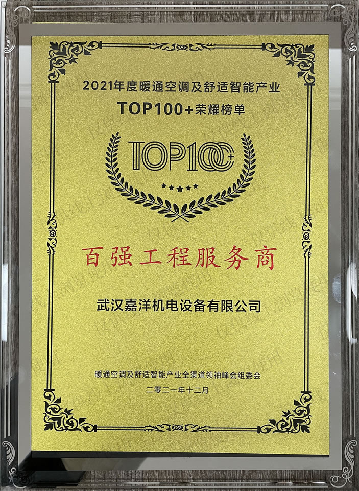 嘉洋機(jī)電作為湖北市場(chǎng)優(yōu)秀的暖通空調(diào)集成商,不僅能為客戶提供全方位的暖通專業(yè)承包、設(shè)備代理及維保服務(wù),還能提供凈水、智能、采暖、新風(fēng)等舒適家居服務(wù)。此次榮獲“百?gòu)?qiáng)工程服務(wù)商”是對(duì)嘉洋機(jī)電行業(yè)地位的認(rèn)可,嘉洋機(jī)電將以此為契機(jī),再接再厲,為暖通空調(diào)及舒適智能產(chǎn)業(yè)的健康成長(zhǎng)增添動(dòng)力。